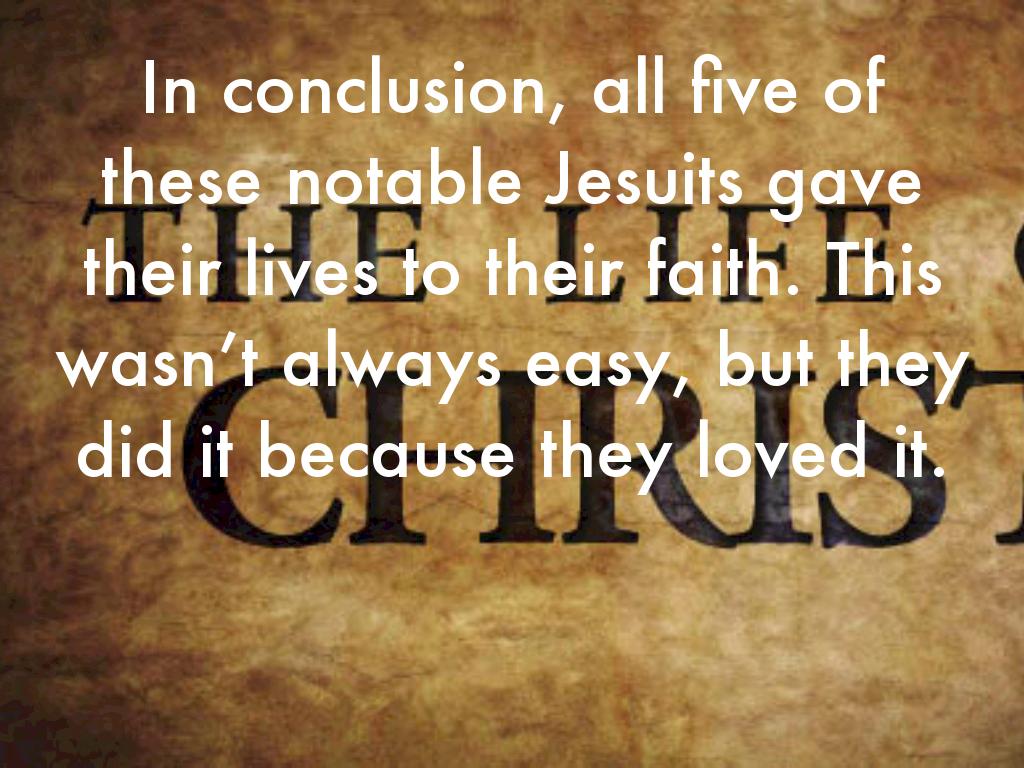 In conclusion, all five of these notable Jesuits gave their lives to their faith. This wasn’t always easy, but they did it because they loved it.