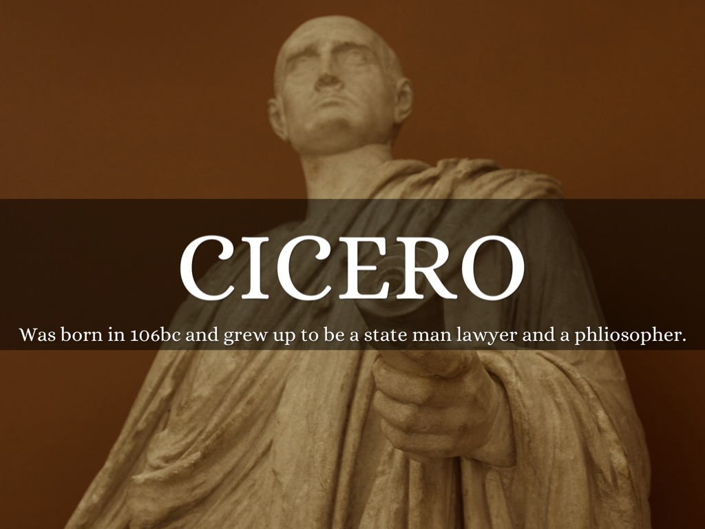 Was born in 106bc and grew up to be a state man lawyer and a phliosopher.