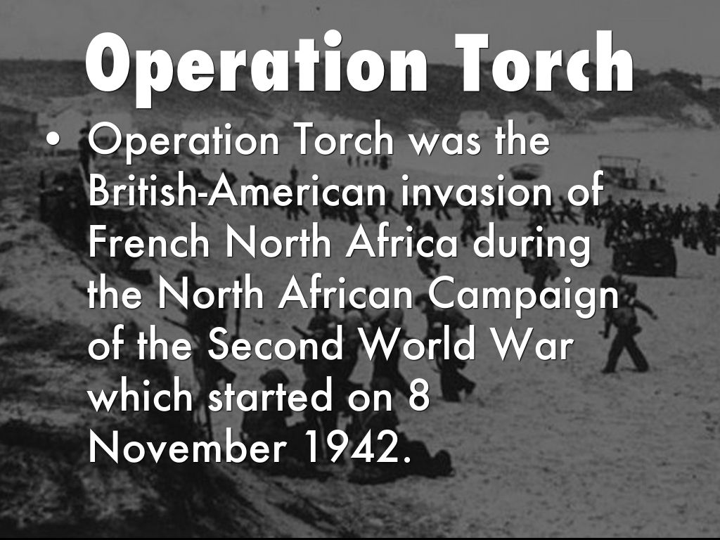 Operation Torch was the British-American invasion of French North Africa during the North African Campaign of the Second World War which started on 8 November 1942.