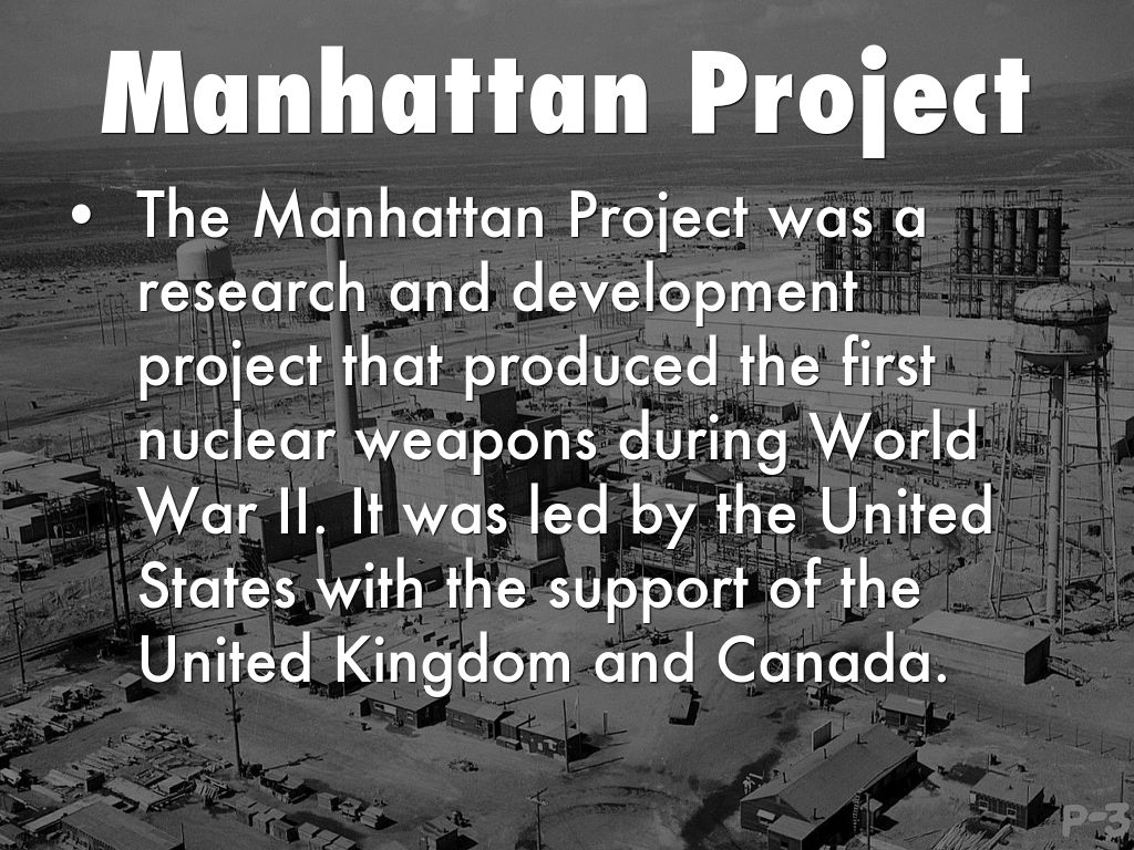 The Manhattan Project was a research and development project that produced the first nuclear weapons during World War II. It was led by the United States with the support of the United Kingdom and Canada.