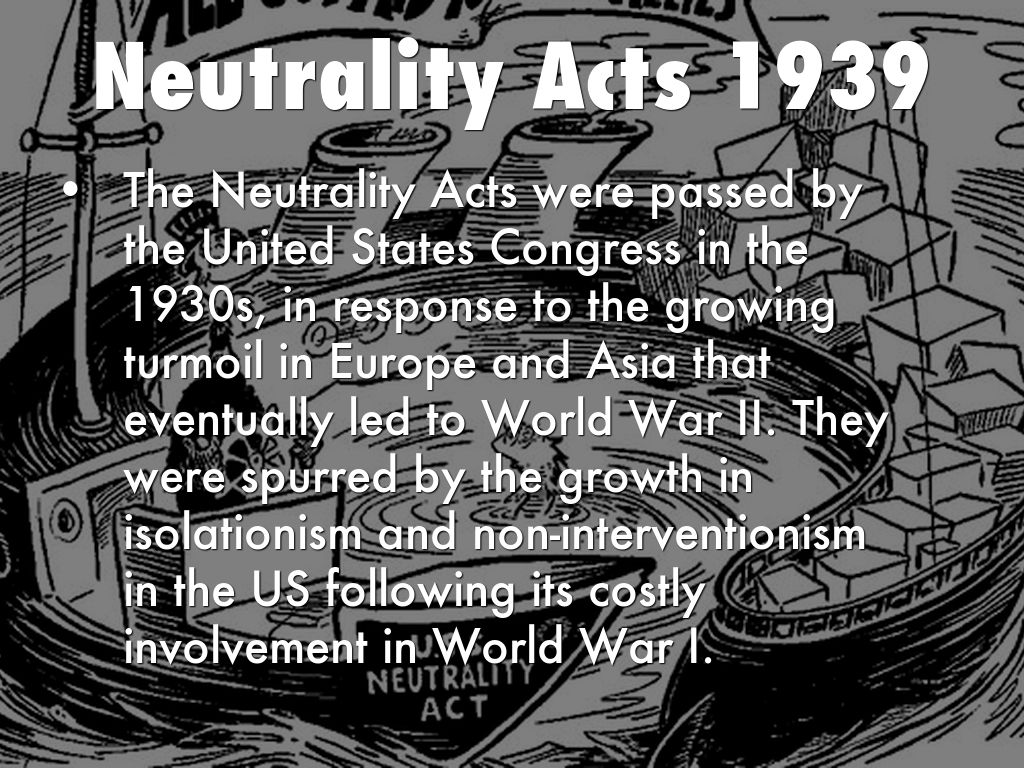 The Neutrality Acts were passed by the United States Congress in the 1930s, in response to the growing turmoil in Europe and Asia that eventually led to World War II. They were spurred by the growth in isolationism and non-interventionism in the US following its costly involvement in World War I.