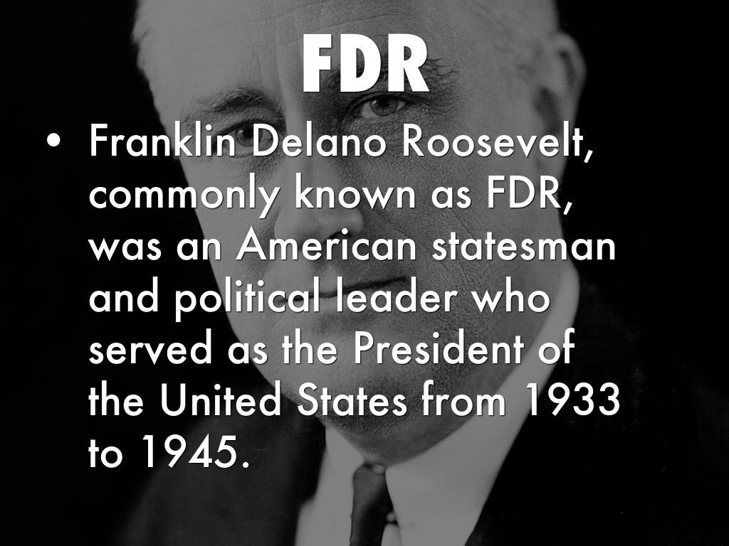 Franklin Delano Roosevelt, commonly known as FDR, was an American statesman and political leader who served as the President of the United States from 1933 to 1945.