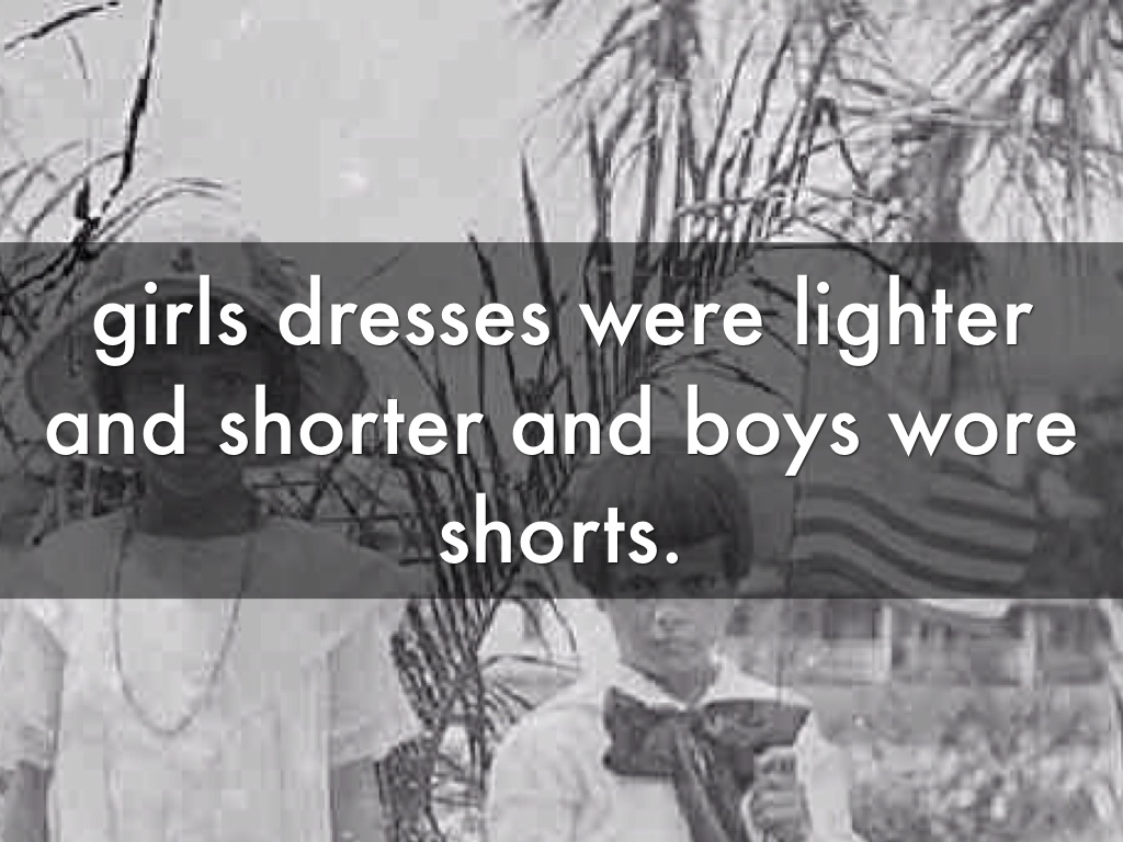 girls dresses were lighter and shorter and boys wore shorts.