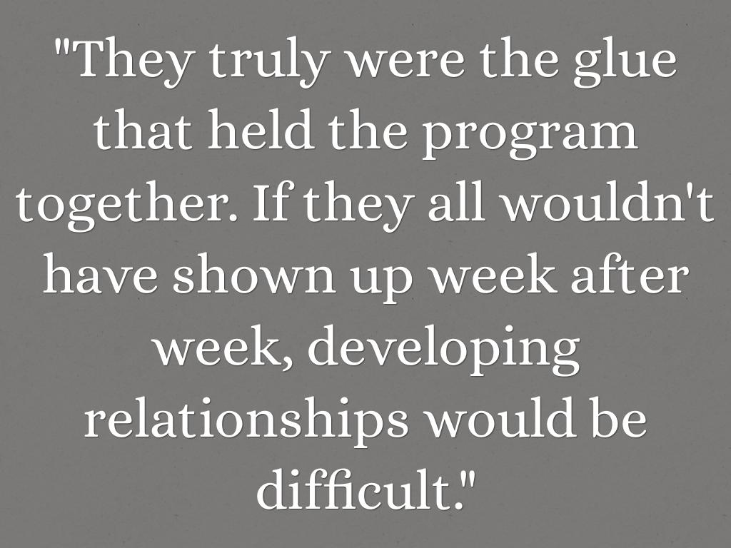"They truly were the glue that held the program together. If they all wouldn't have shown up week after week, developing relationships would be difficult."