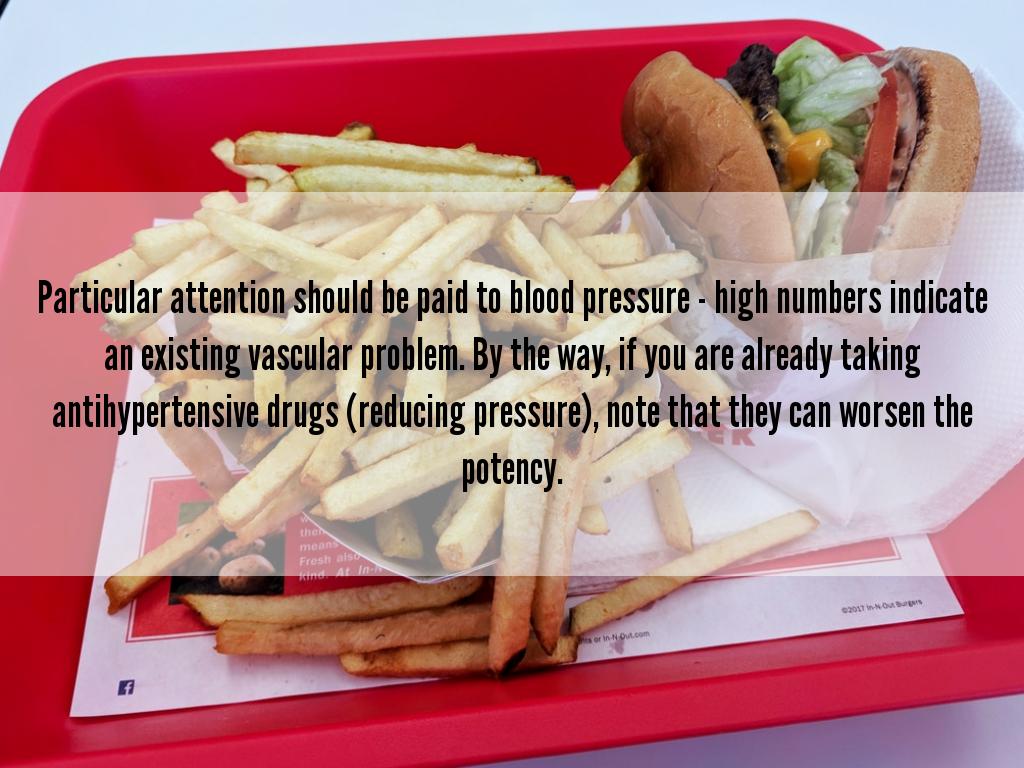 Particular attention should be paid to blood pressure - high numbers indicate an existing vascular problem. By the way, if you are already taking antihypertensive drugs (reducing pressure), note that they can worsen the potency.