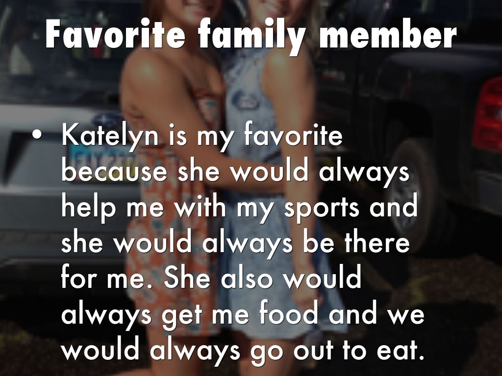 Katelyn is my favorite because she would always help me with my sports and she would always be there for me. She also would always get me food and we would always go out to eat.