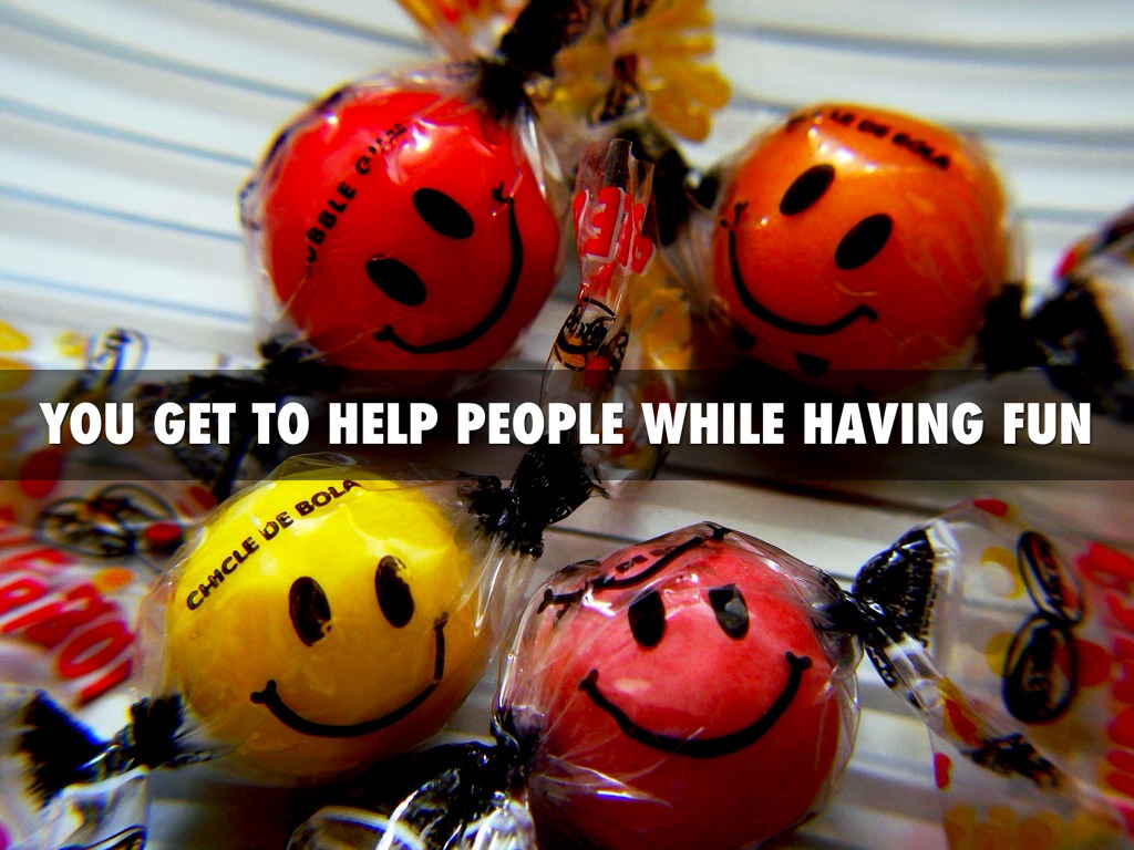 YOU GET TO HELP PEOPLE WHILE HAVING FUN