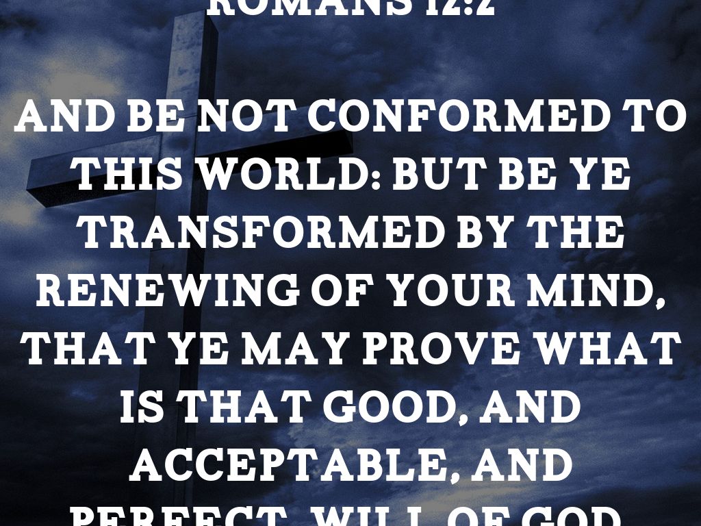 And be not conformed to this world: but be ye transformed by the renewing of your mind, that ye may prove what is that good, and acceptable, and perfect, will of God.