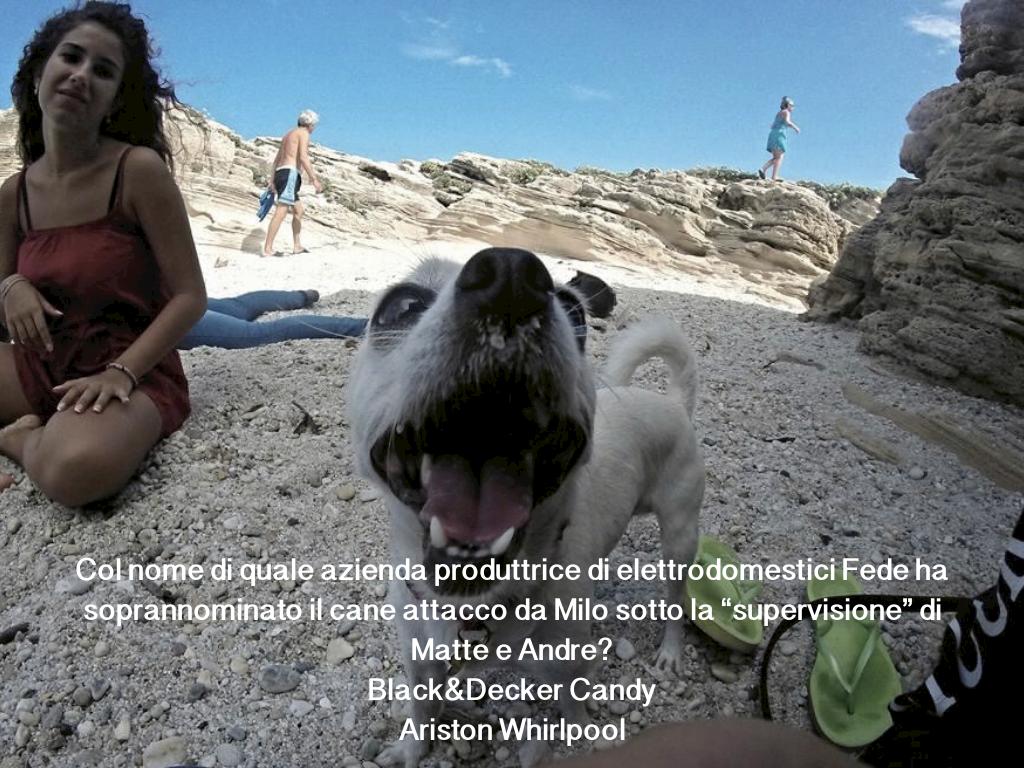 Col nome di quale azienda produttrice di elettrodomestici Fede ha soprannominato il cane attacco da Milo sotto la “supervisione” di Matte e Andre?