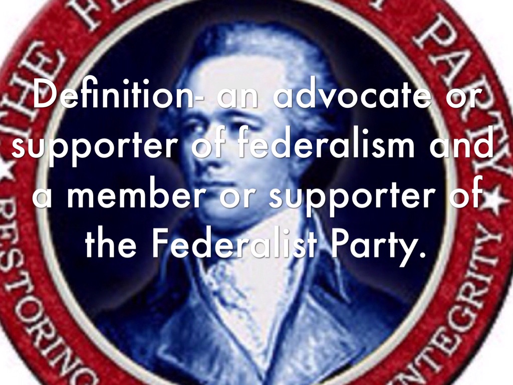 Definition- an advocate or supporter of federalism and a member or supporter of the Federalist Party.