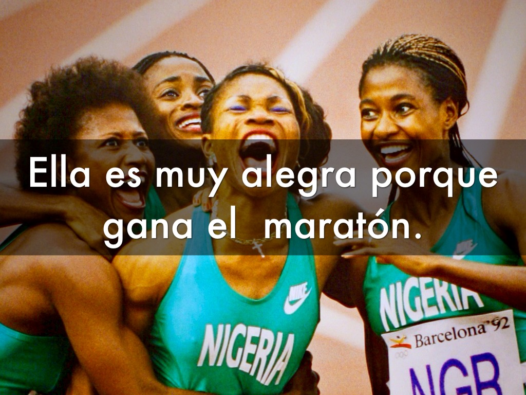 Ella es muy alegra porque gana el maratón.