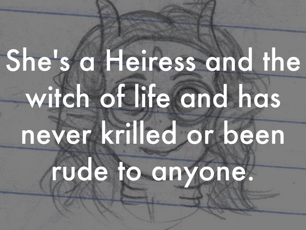 She's a Heiress and the witch of life and has never krilled or been rude to anyone.