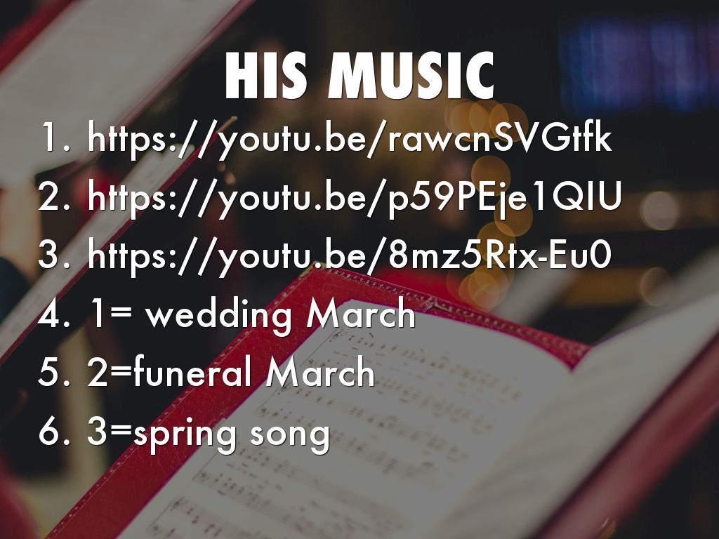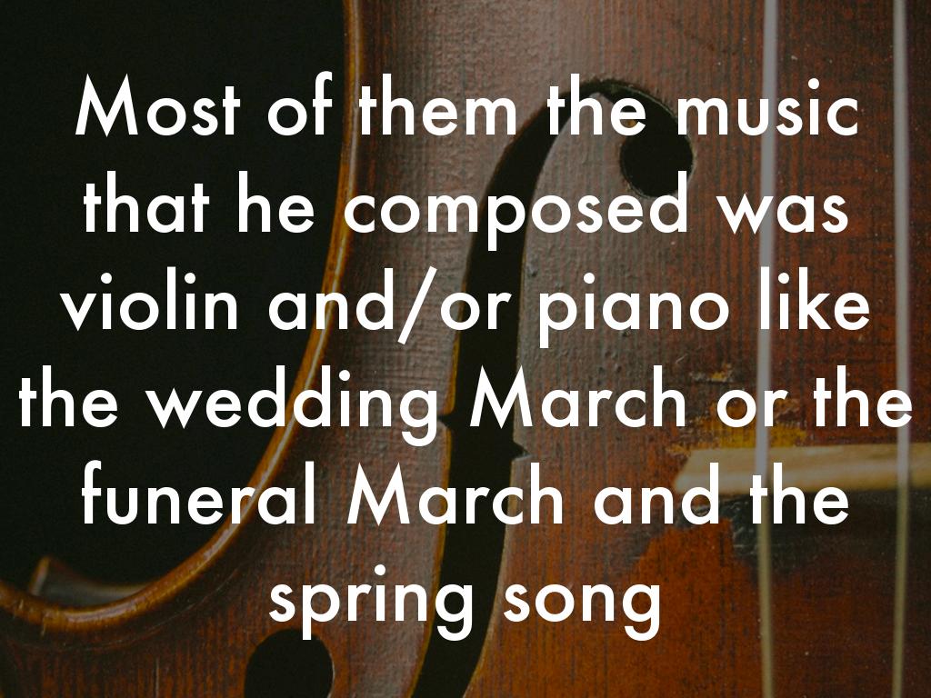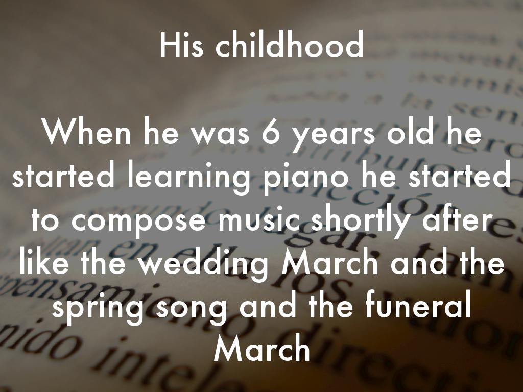 When he was 6 years old he started learning piano he started to compose music shortly after like the wedding March and the spring song and the funeral March