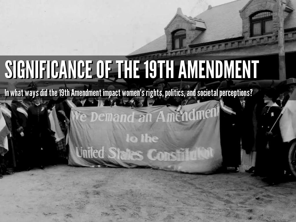 • In broader terms, the 19th Amendment played a key role in bringing millions of women closer to equality in various aspects of American life. Women, now enfranchised, actively advocated for job opportunities, fair wages, education, and birth control.