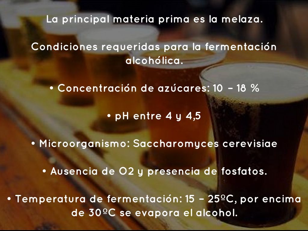 Condiciones requeridas para la fermentación alcohólica.
