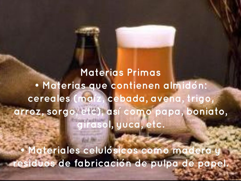 • Materias que contienen almidón: cereales (maíz, cebada, avena, trigo, arroz, sorgo, etc), así como papa, boniato, girasol, yuca, etc.