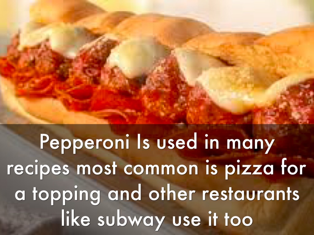 Pepperoni Is used in many recipes most common is pizza for a topping and other restaurants like subway use it too