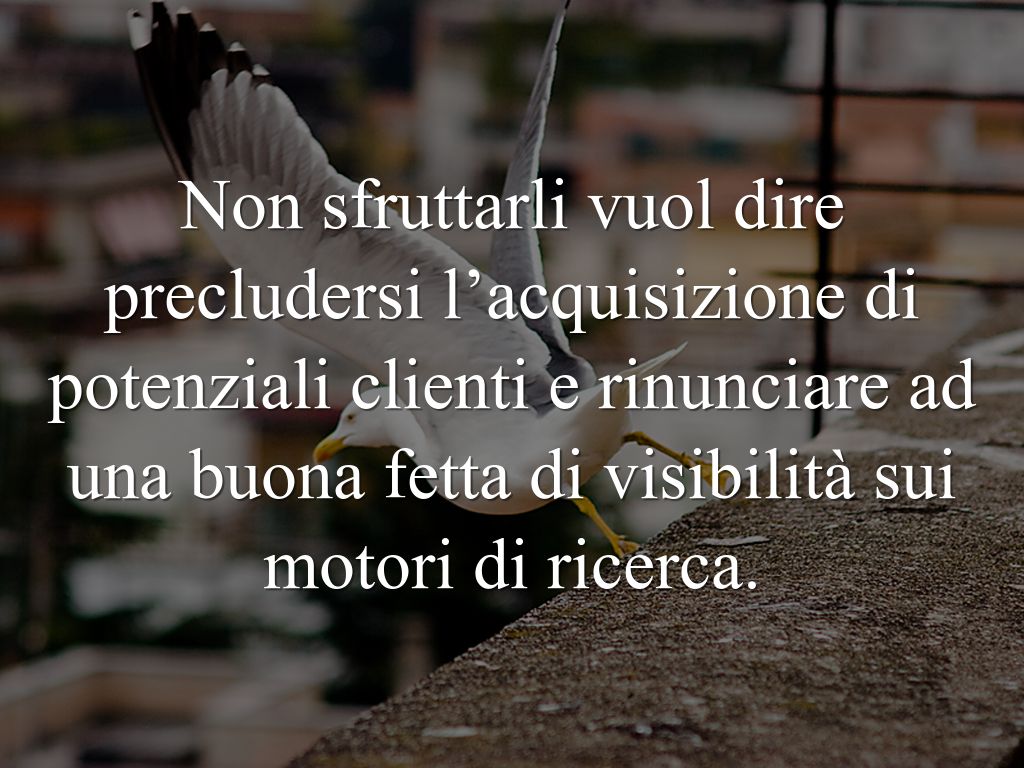 Non sfruttarli vuol dire precludersi l’acquisizione di potenziali clienti e rinunciare ad una buona fetta di visibilità sui motori di ricerca.