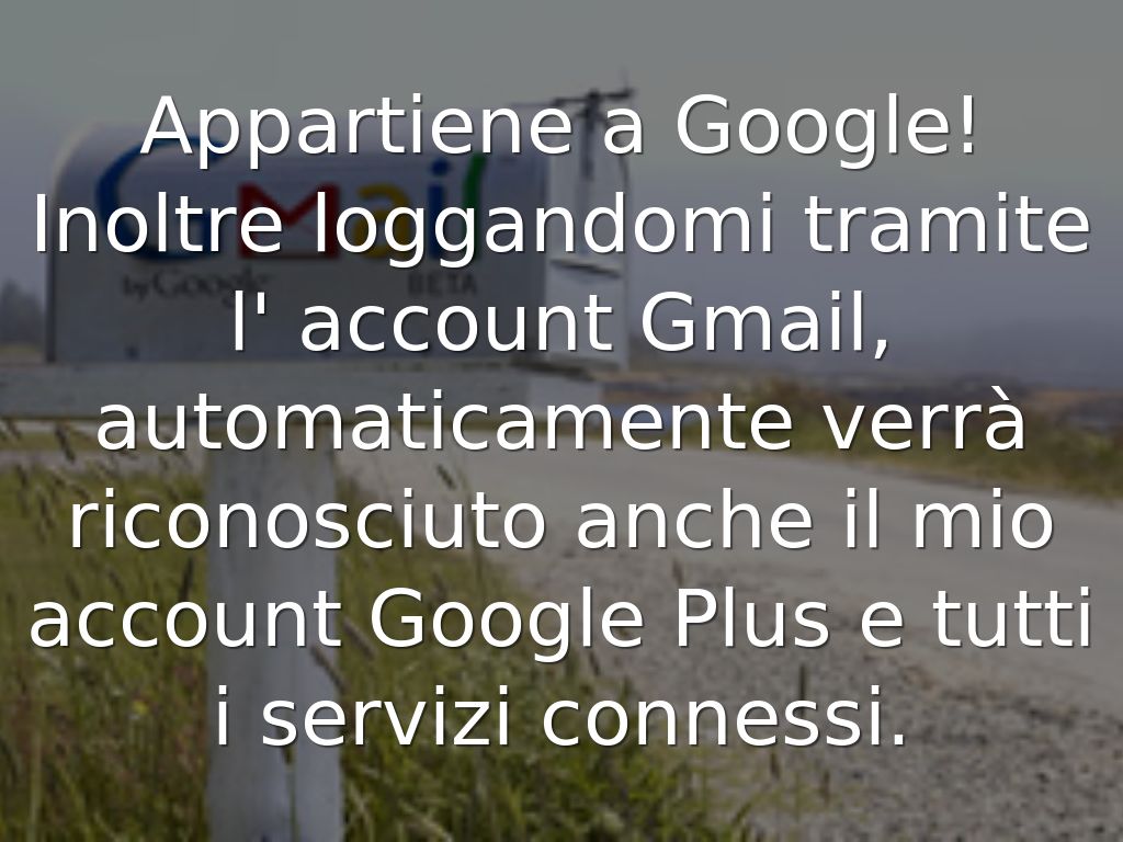 Appartiene a Google! Inoltre loggandomi tramite l' account Gmail, automaticamente verrà riconosciuto anche il mio account Google Plus e tutti i servizi connessi.
