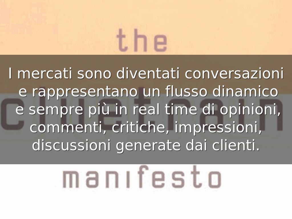 I mercati sono diventati conversazioni e rappresentano un flusso dinamico e sempre più in real time di opinioni, commenti, critiche, impressioni, discussioni generate dai clienti.
