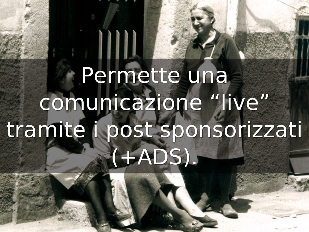 Permette una comunicazione “live” tramite i post sponsorizzati (+ADS).