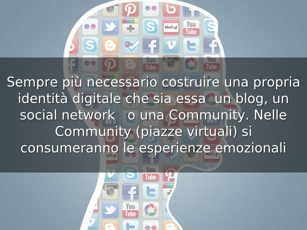 Sempre più necessario costruire una propria identità digitale che sia essa un blog, un social network o una Community. Nelle Community (piazze virtuali) si consumeranno le esperienze emozionali