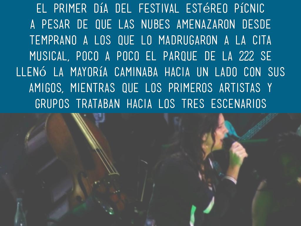 A pesar de que las nubes amenazaron desde temprano a los que lo madrugaron a la cita musical, poco a poco el Parque de la 222 se llenó La mayoría caminaba hacia un lado con sus amigos, mientras que los primeros artistas y grupos trataban hacia los tres escenarios