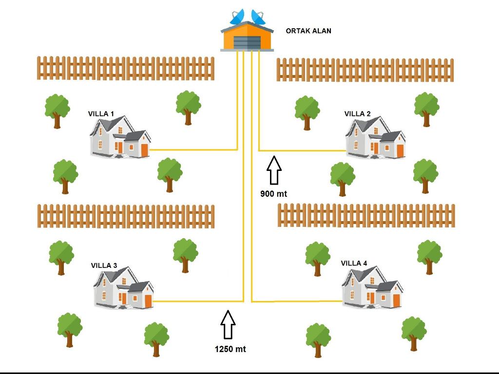 4 ADET VİLLANIN FİBER OPTİK UYDU SİSTEMİ KURULUMU