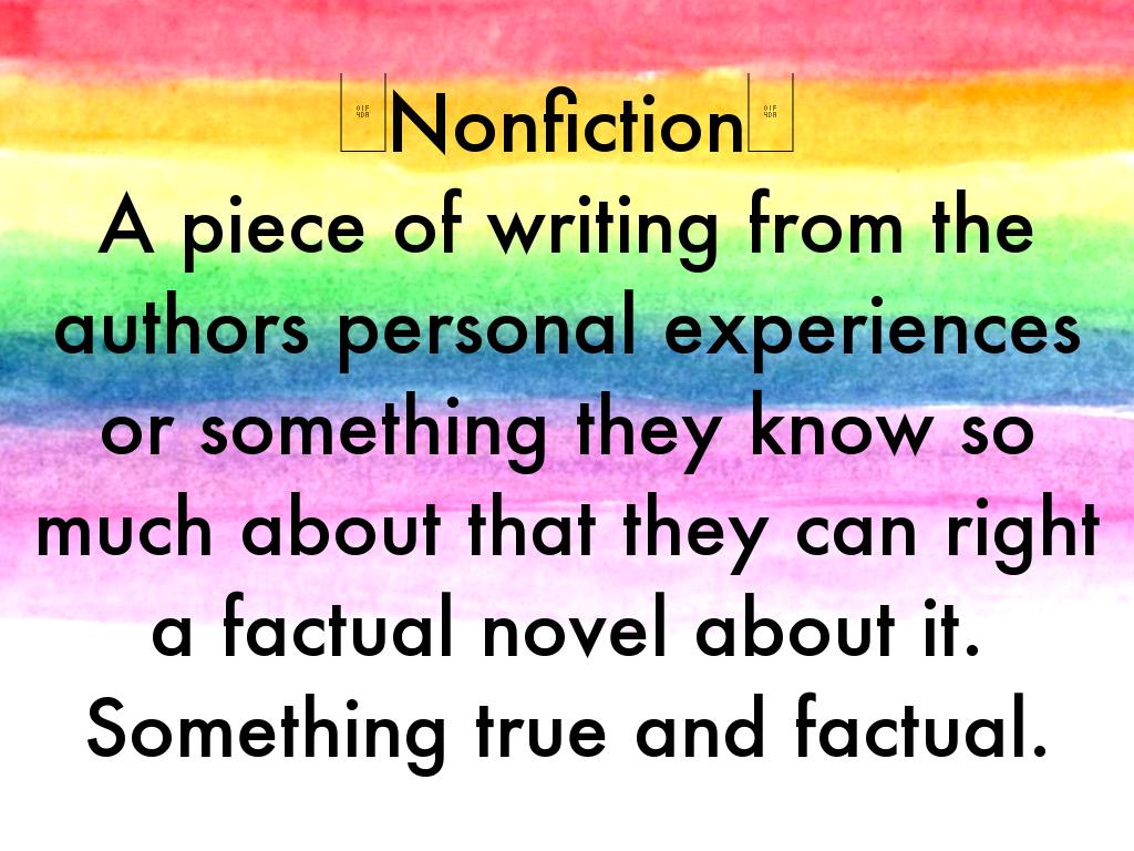 A piece of writing from the authors personal experiences or something they know so much about that they can right a factual novel about it. Something true and factual.