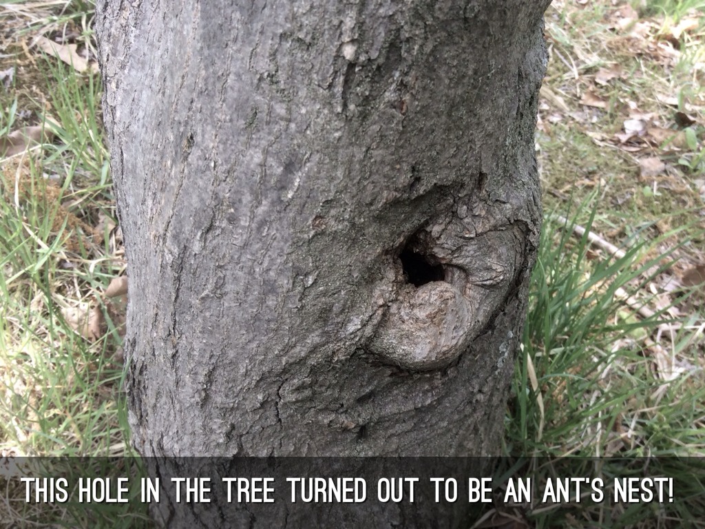 THIS HOLE IN THE TREE TURNED OUT TO BE AN ANT'S NEST!
