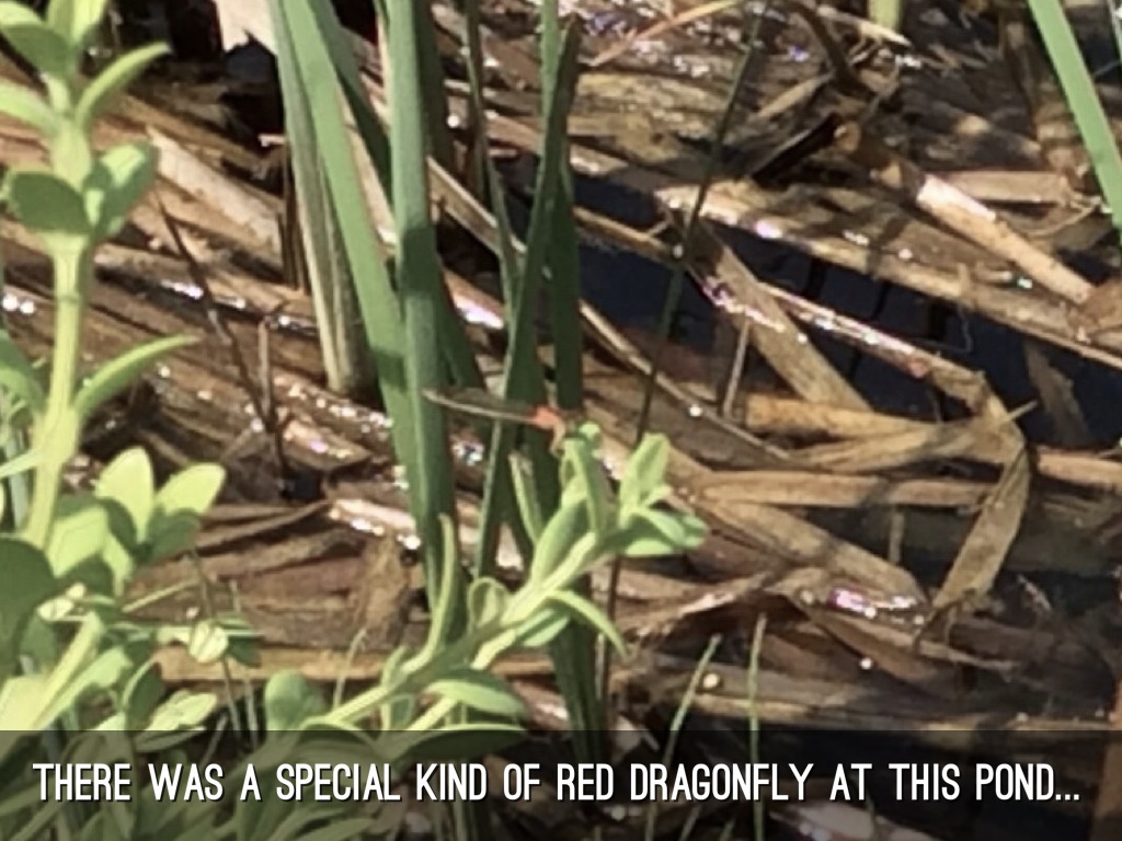 THERE WAS A SPECIAL KIND OF RED DRAGONFLY AT THIS POND...