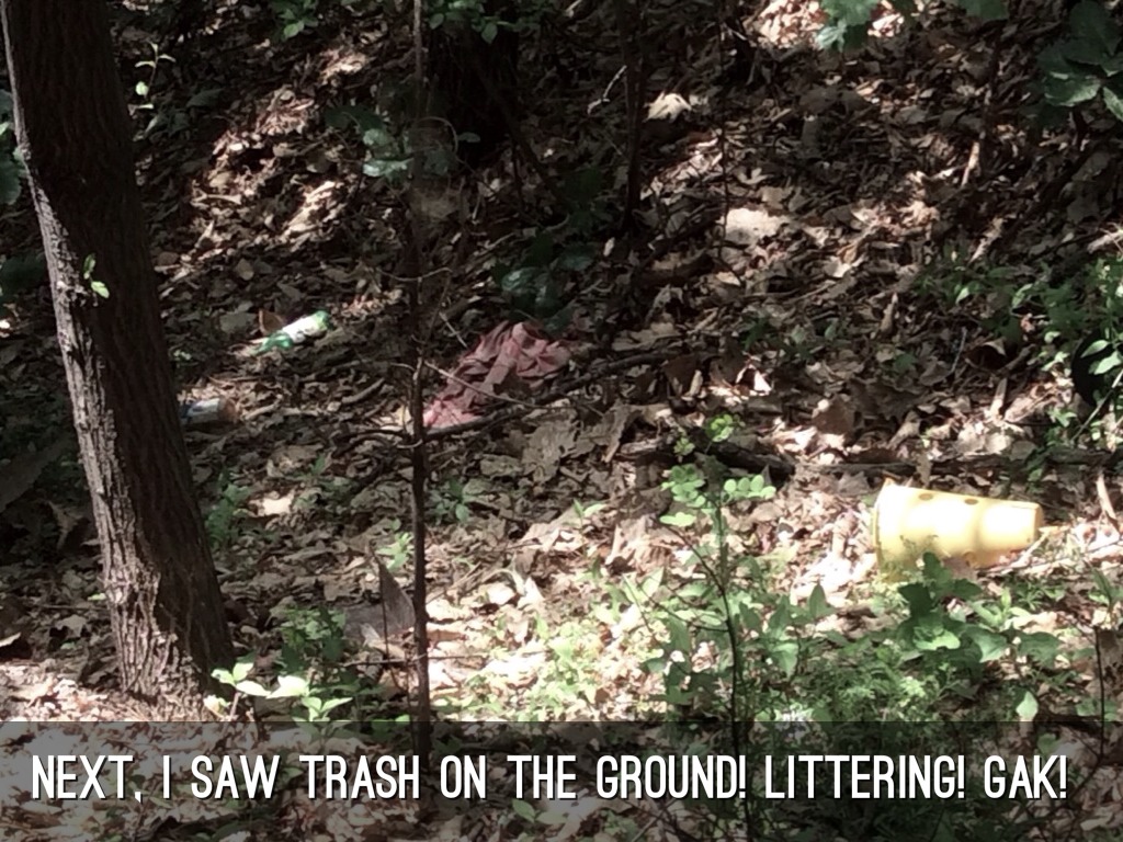 NEXT, I SAW TRASH ON THE GROUND! LITTERING! GAK!