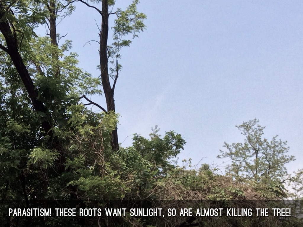 PARASITISM! THESE ROOTS WANT SUNLIGHT, SO ARE ALMOST KILLING THE TREE!