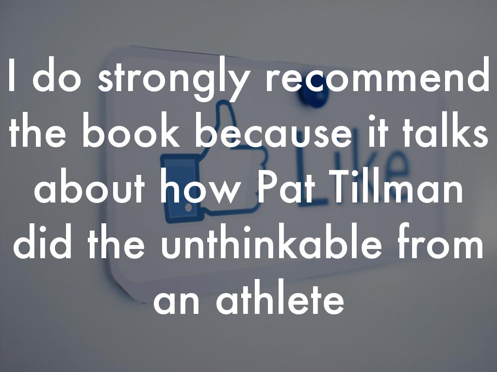 I do strongly recommend the book because it talks about how Pat Tillman did the unthinkable from an athlete