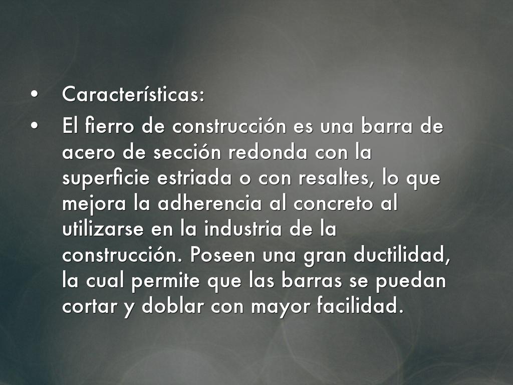 El fierro de construcción es una barra de acero de sección redonda con la superficie estriada o con resaltes, lo que mejora la adherencia al concreto al utilizarse en la industria de la construcción. Poseen una gran ductilidad, la cual permite que las barras se puedan cortar y doblar con mayor facilidad.