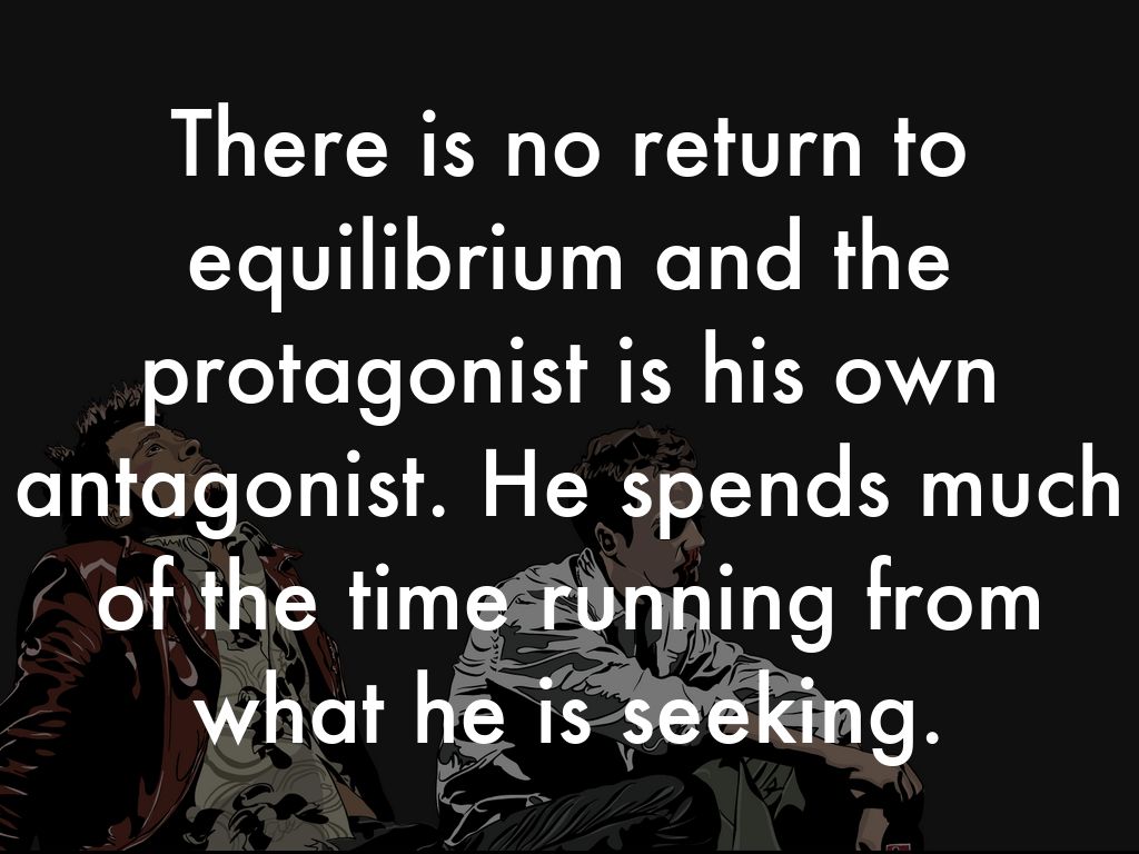 There is no return to equilibrium and the protagonist is his own antagonist. He spends much of the time running from what he is seeking.