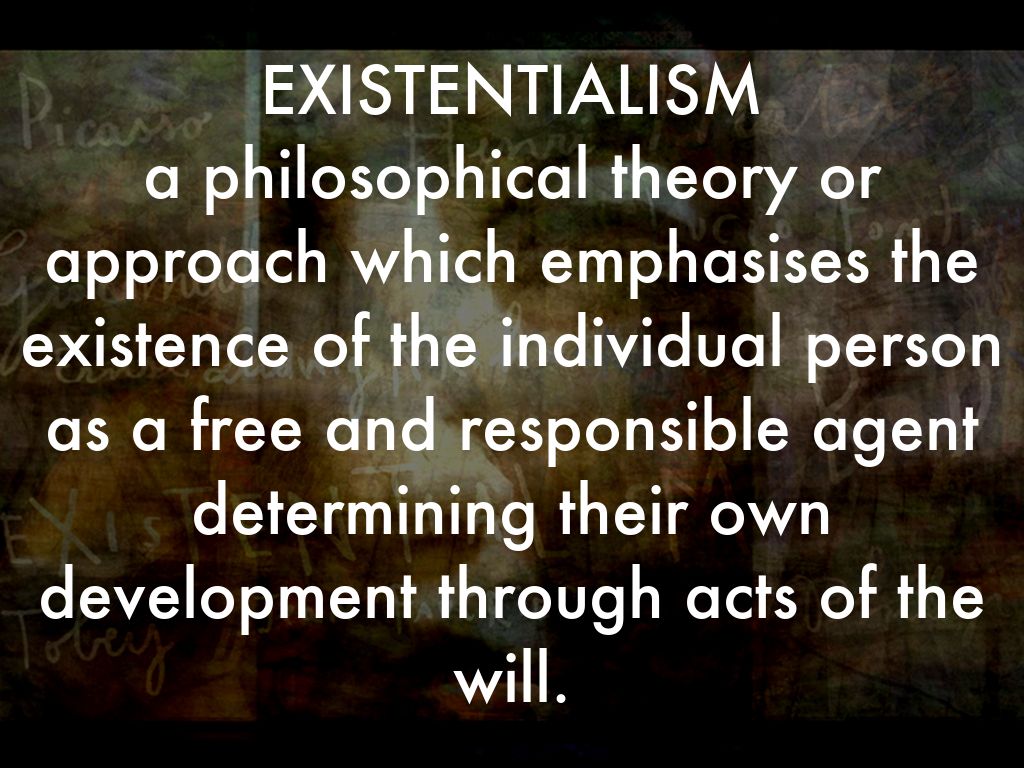 a philosophical theory or approach which emphasises the existence of the individual person as a free and responsible agent determining their own development through acts of the will.