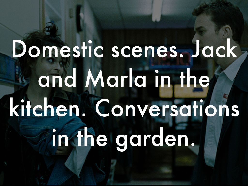 Domestic scenes. Jack and Marla in the kitchen. Conversations in the garden.