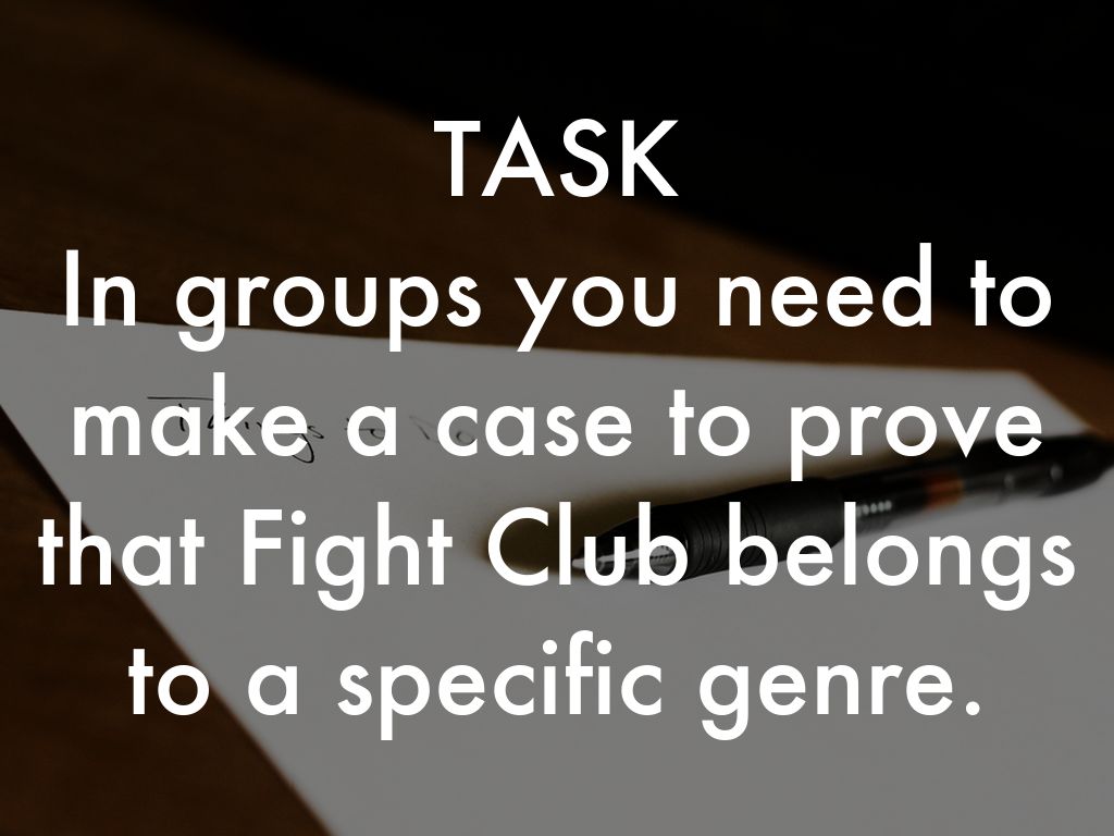 In groups you need to make a case to prove that Fight Club belongs to a specific genre.