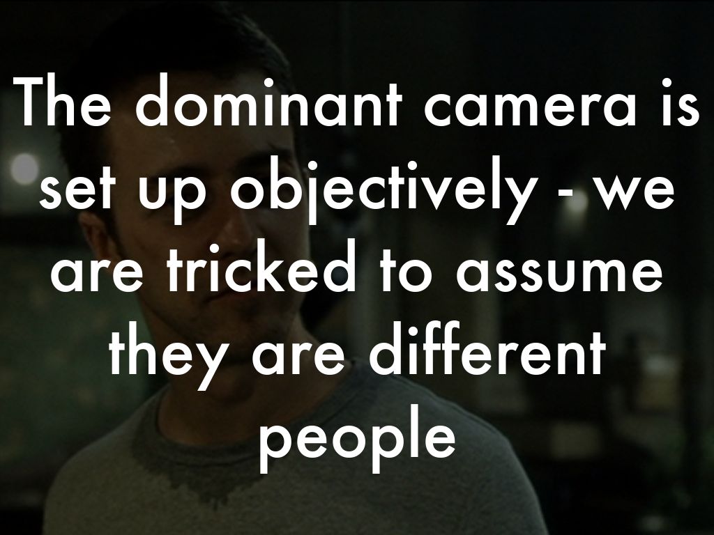 The dominant camera is set up objectively - we are tricked to assume they are different people