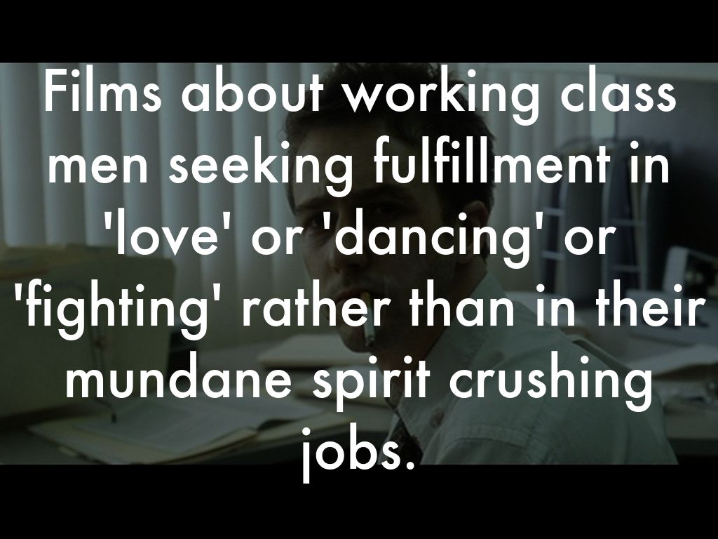 Films about working class men seeking fulfillment in 'love' or 'dancing' or 'fighting' rather than in their mundane spirit crushing jobs.
