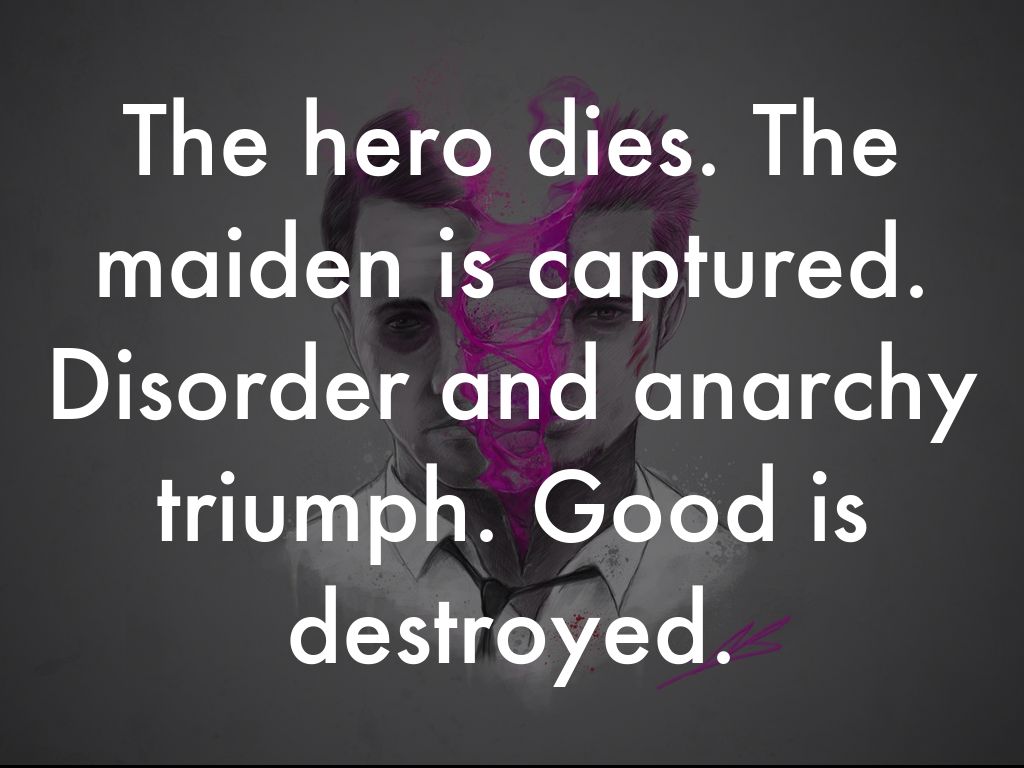 The hero dies. The maiden is captured. Disorder and anarchy triumph. Good is destroyed.