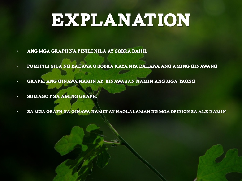 - Sa mga graph na ginawa namin ay naglalaman ng mga opinion sa ale namin