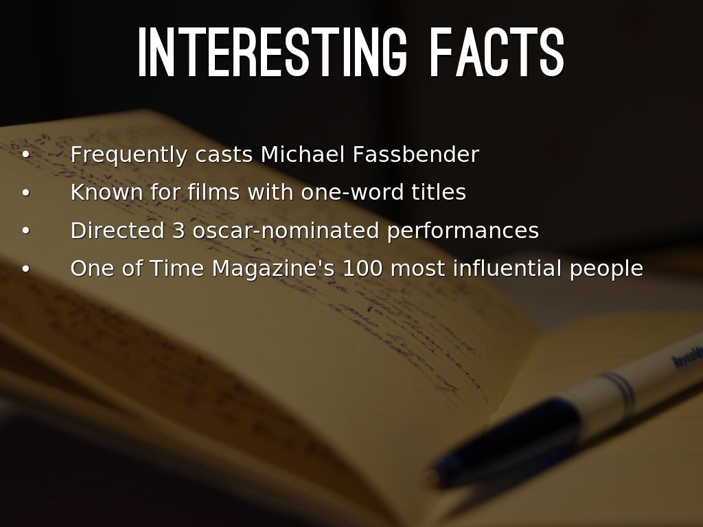 Broke through into the mainstream industry in 2008, with his film "hunger"