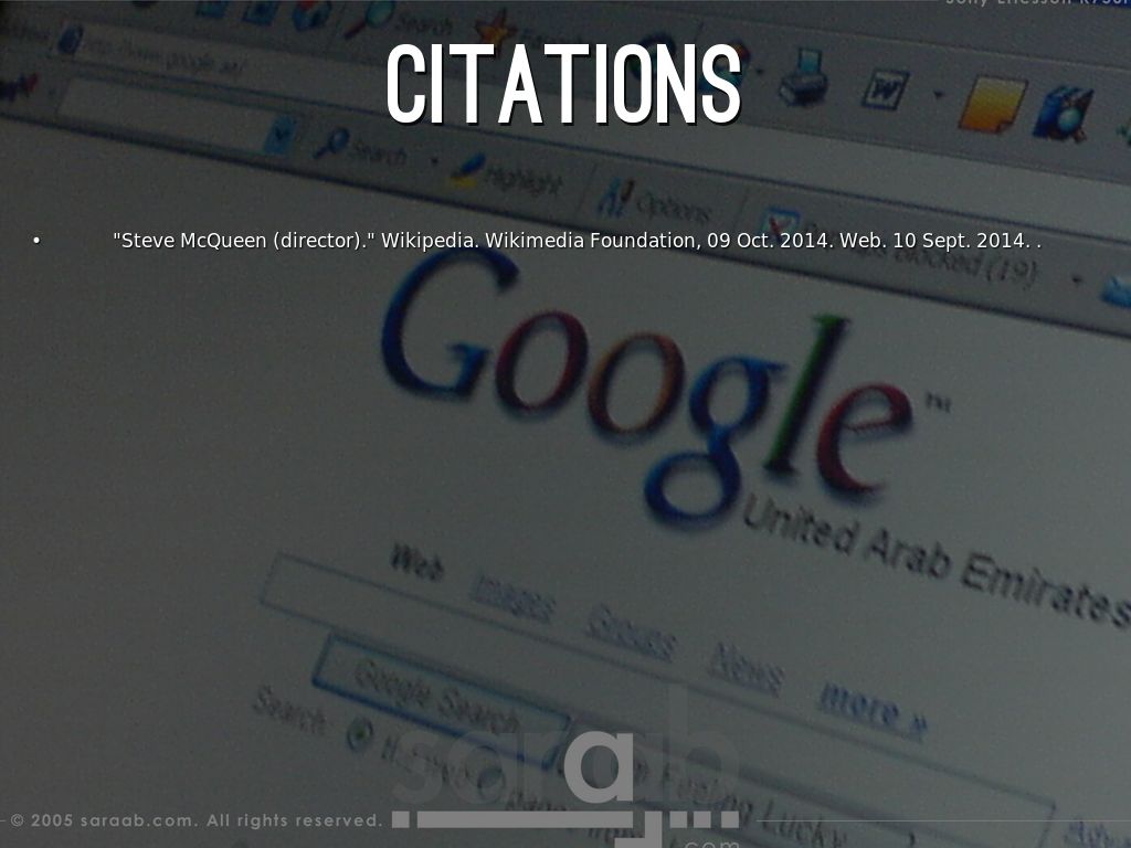 "Steve McQueen (director)." Wikipedia. Wikimedia Foundation, 09 Oct. 2014. Web. 10 Sept. 2014. .