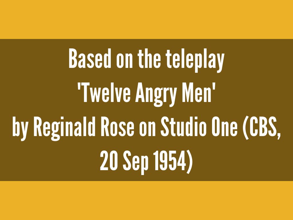 by Reginald Rose on Studio One (CBS, 20 Sep 1954)