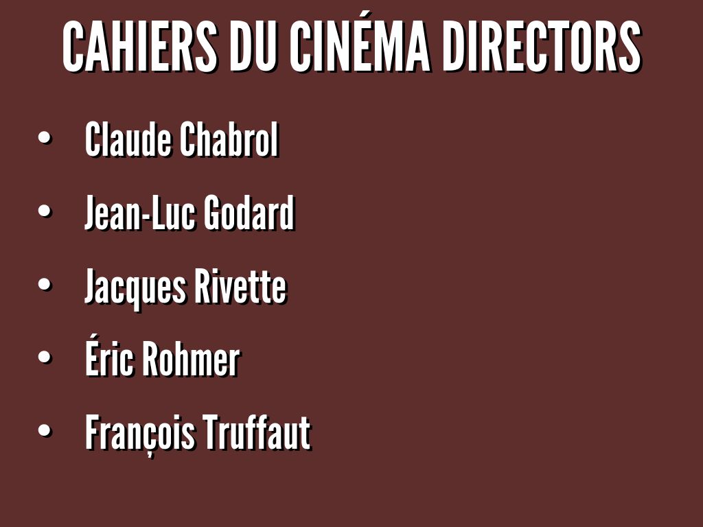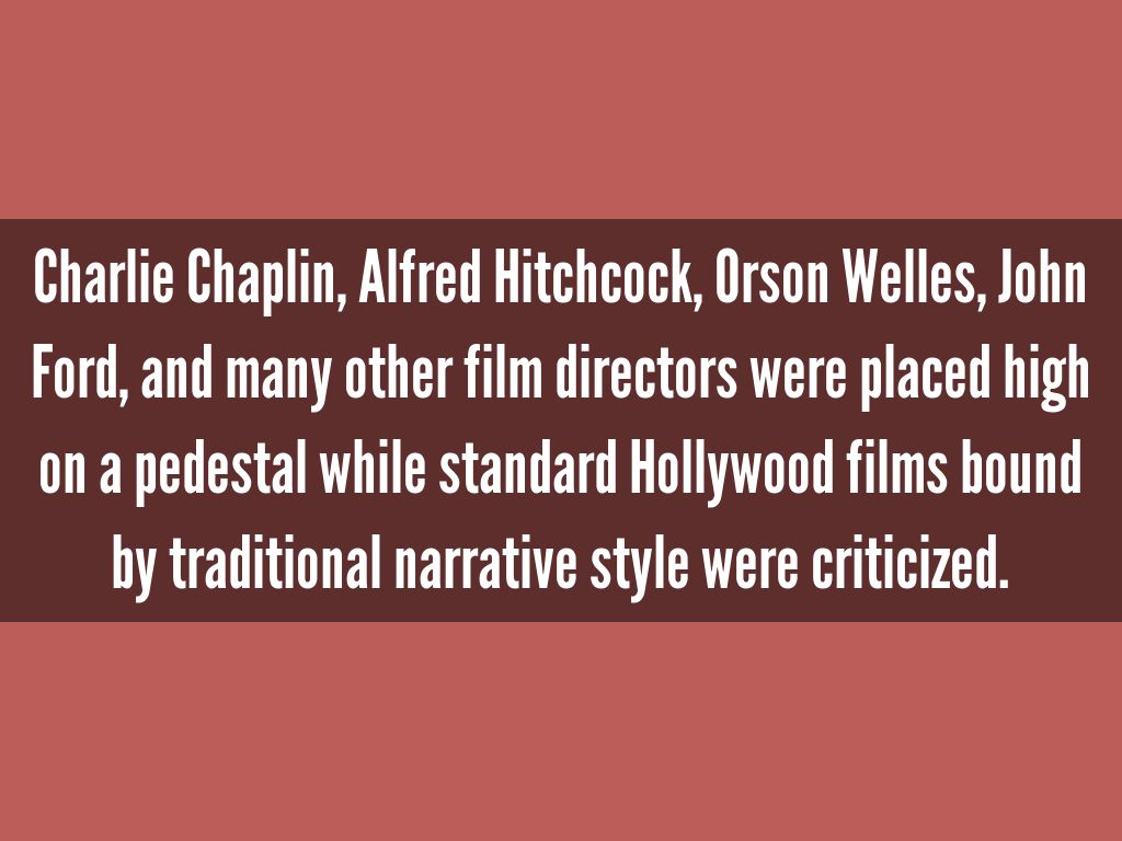 Charlie Chaplin, Alfred Hitchcock, Orson Welles, John Ford, and many other film directors were placed high on a pedestal while standard Hollywood films bound