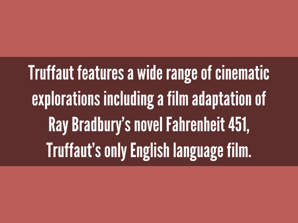 Truffaut features a wide range of cinematic explorations including a film adaptation of