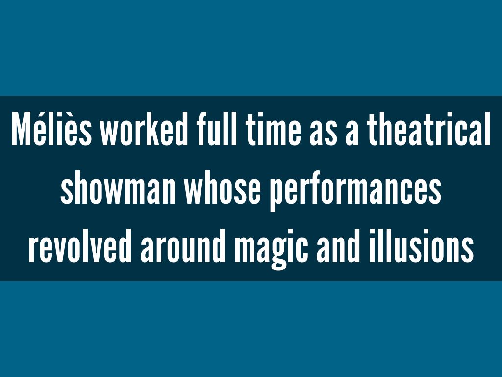 Méliès worked full time as a theatrical showman whose performances revolved around magic and illusions