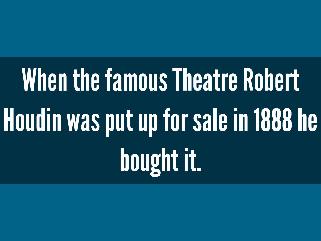 When the famous Theatre Robert Houdin was put up for sale in 1888 he bought it.